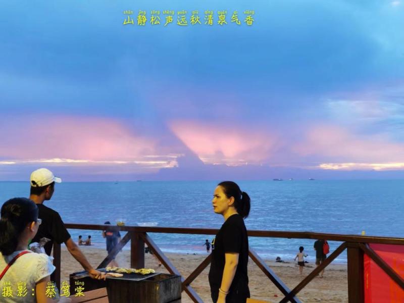 山爱夕阳新雨后,海蓝天和人意舒。