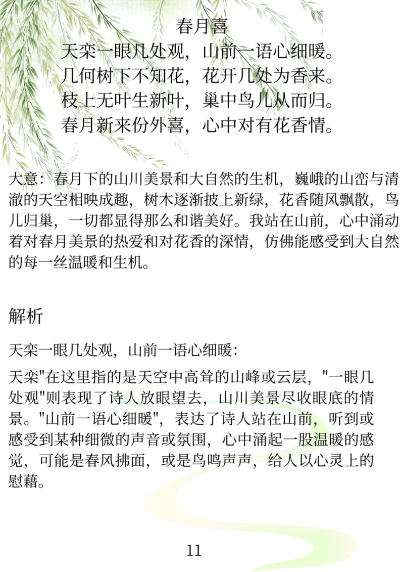 春月新来份外喜,心中对有花香情
