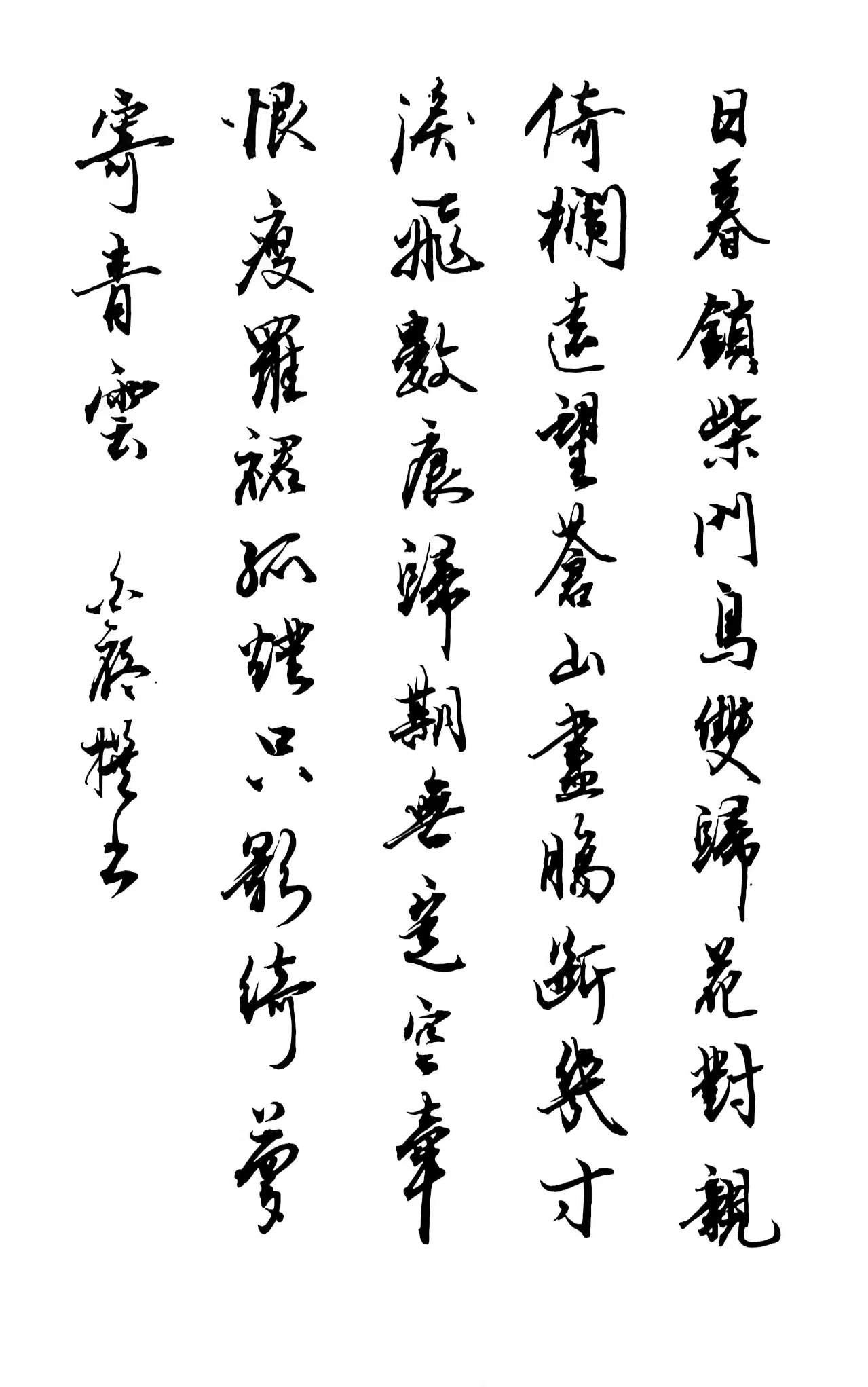 日暮锁柴门,鸟双归,花对亲。倚栏远望苍山尽。肠断几寸,泪飞数痕,归期无定空牵恨。廋罗裙,孤灯只影,绮梦寄青云。
