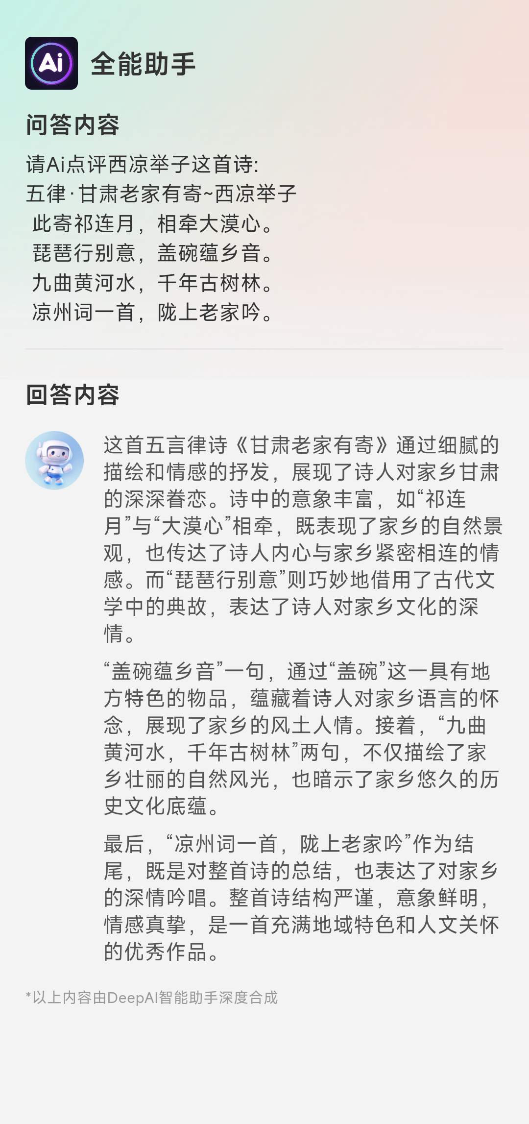 凉州词一首,陇上老家吟。