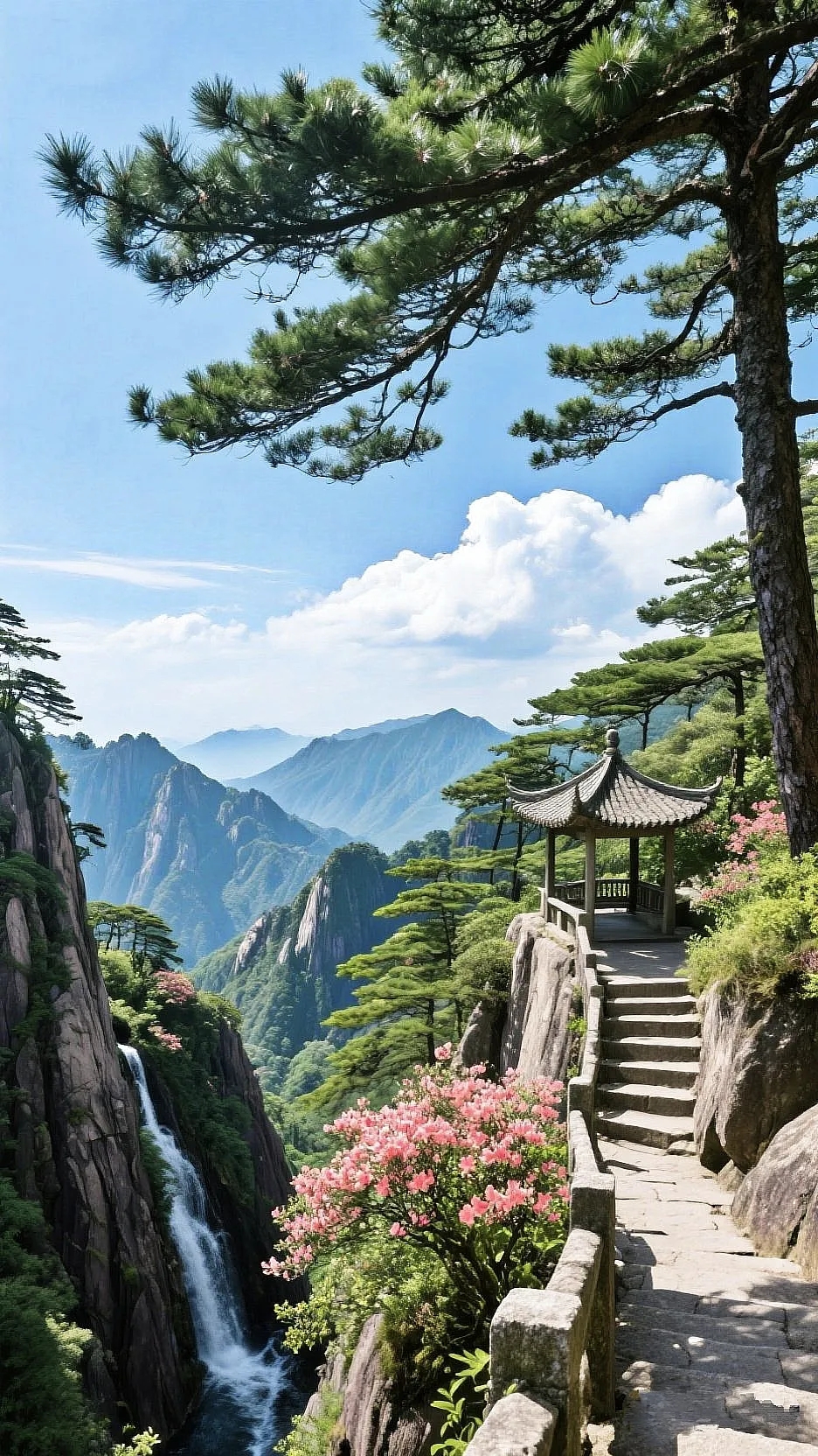 栈道盘虚通鹤梦,溪光漾碧洗尘缨