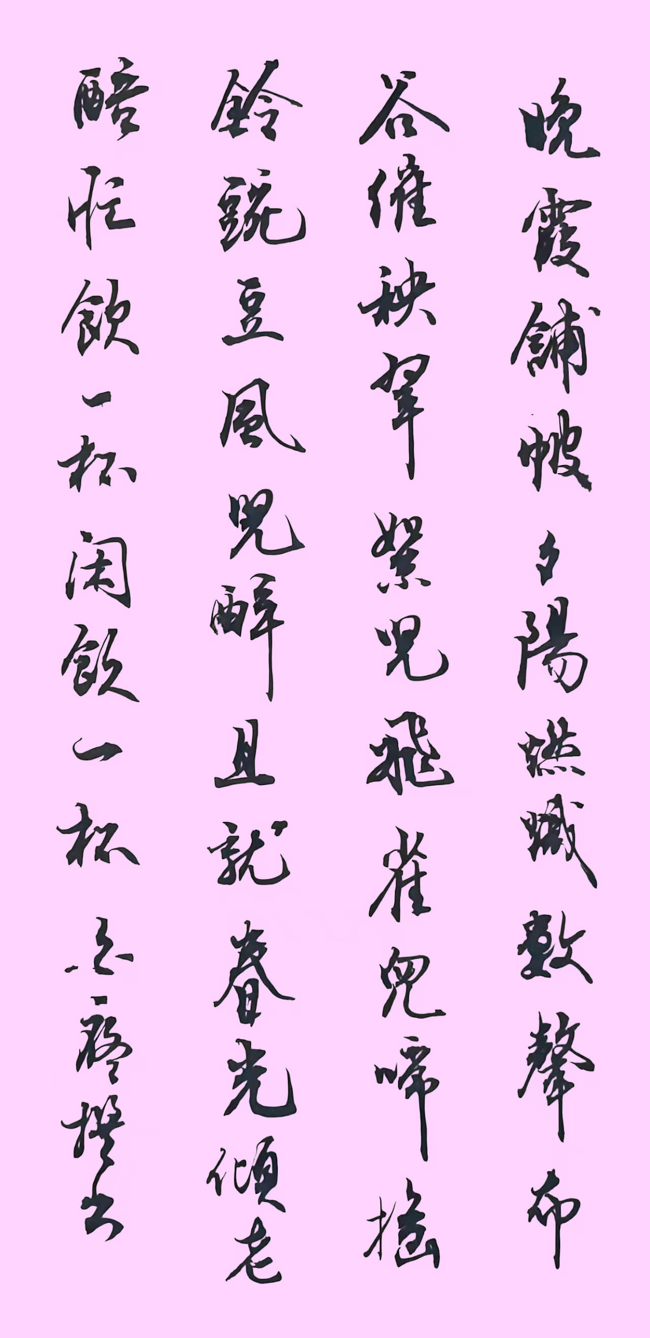 晚霞铺帔,夕阳燃炽。数声布谷催秧翠。絮儿飞,雀儿啼,摇铃豌豆风儿醉。且就春光傾绿醅,忙,饮一杯,闲,饮一杯。