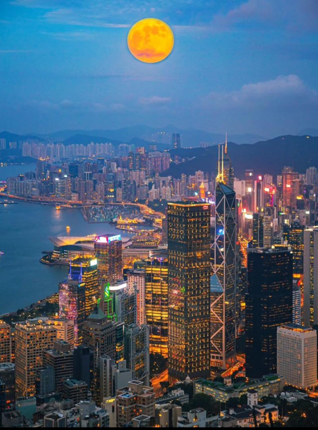 香江圆月染乡情,寄语微风附耳倾。