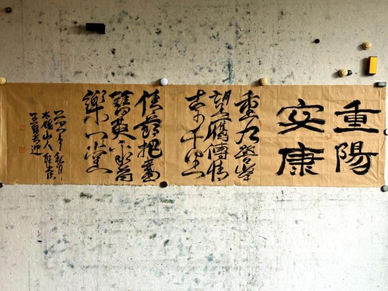 重九登峰,望雁传情牵千里;佳节把盏,簪萸聚首乐一堂。