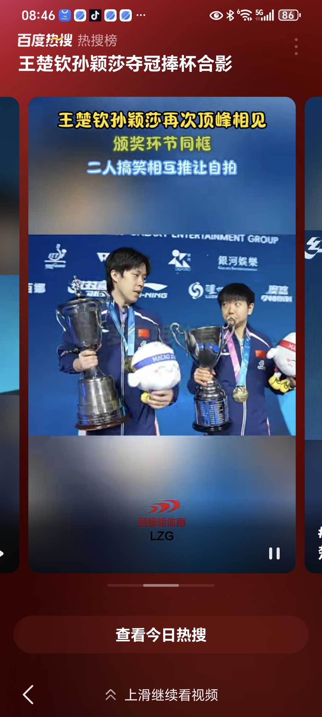 4月5日,男女世界第一王楚钦孙颖莎在澳门世界杯双双登顶并合影留念,特赋诗一首以示庆祝!