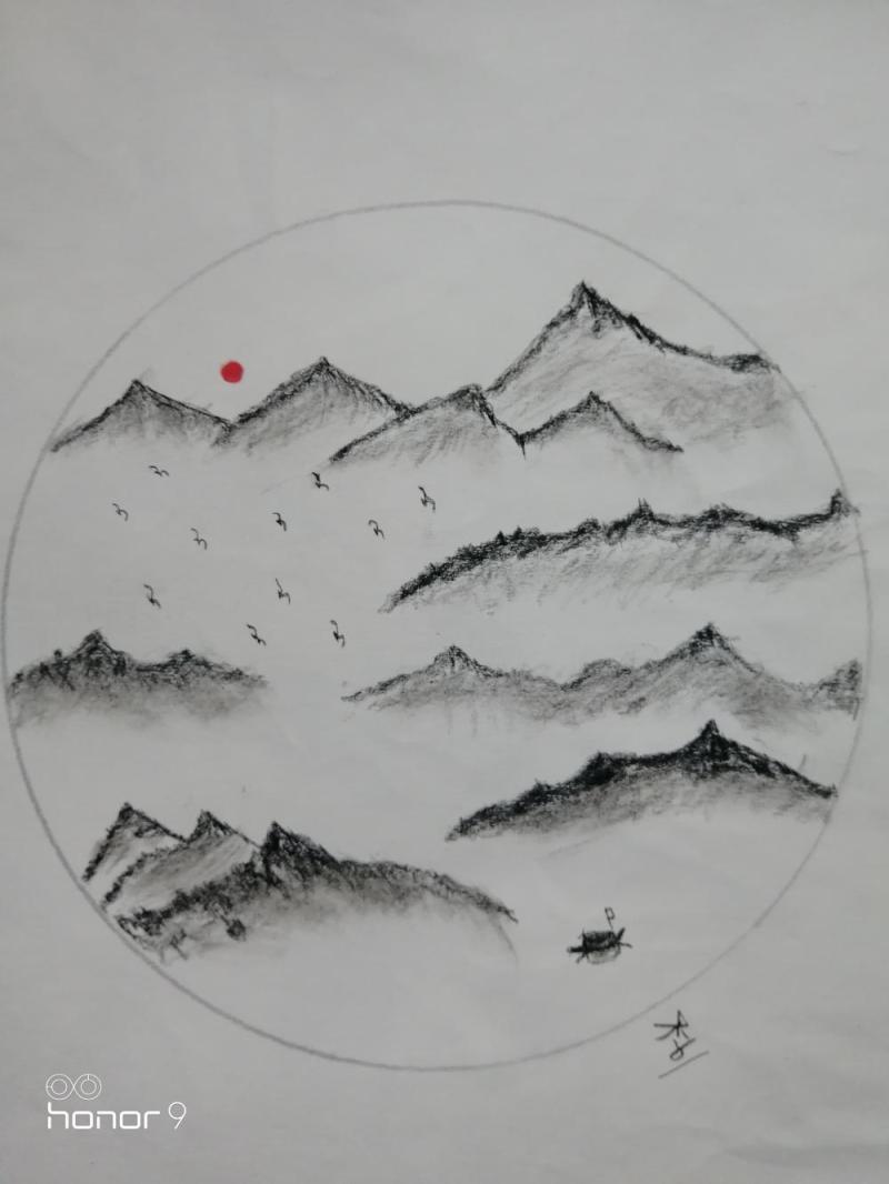 书山绝顶志能攀。笔落白纸边。风吹香墨飘散,醉得喜人欢。红日照,古今天,苦能钻,博文腾越,把酒问天,大好河山