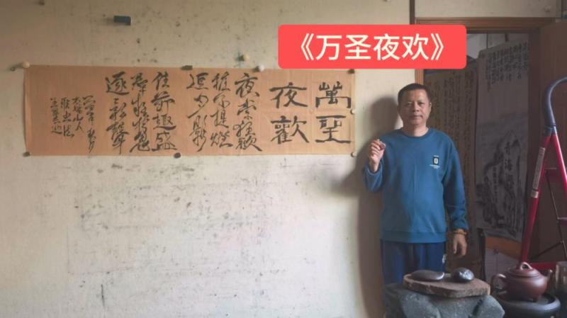 万圣良宵夜色浓,妆成鬼怪逐欢容。灯摇南瓜笑声里,稚子提篮讨彩红。