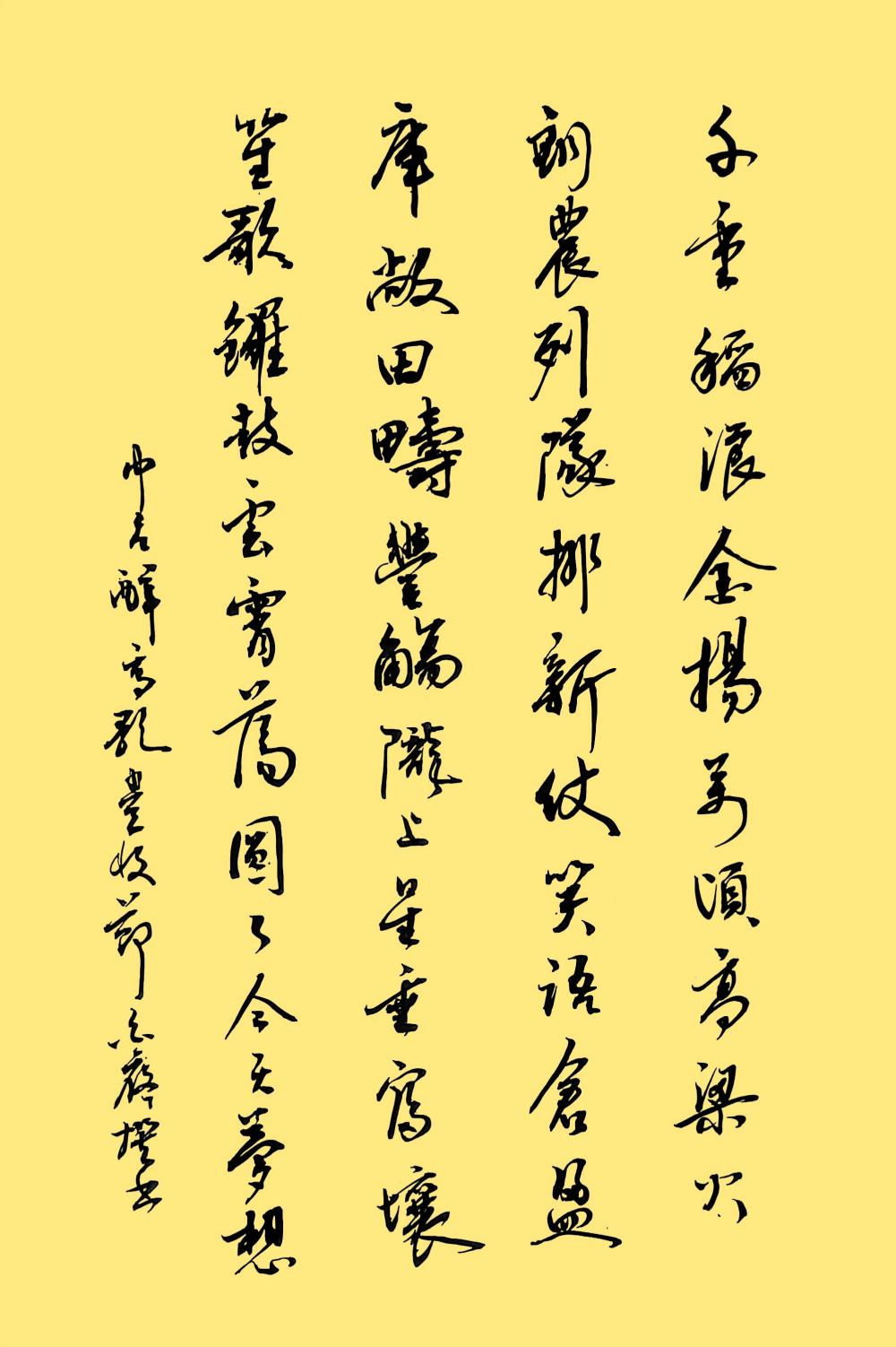 千重稻浪金扬,万顷高粱火朗。农机列阵排新仗,笑语仓盈库敞。田畴月下丰觞,陇上星垂富穰。笙歌锣鼓云霄荡,圆了农家梦想。