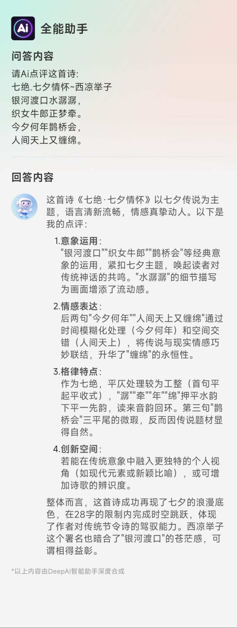 星河浩渺鹊桥架,牛女相逢泪染纱。一岁一宵情未改,相思尽在不言夸。