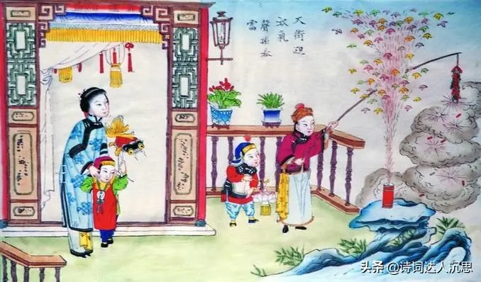 众亲人笑容,电炉围守。福临门、划拳倾酒。望宇穹、明月星光闪,尽情言语,直到深更漏。