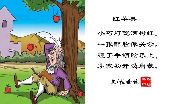 苹果落地牛顿发现万有引力定律。
