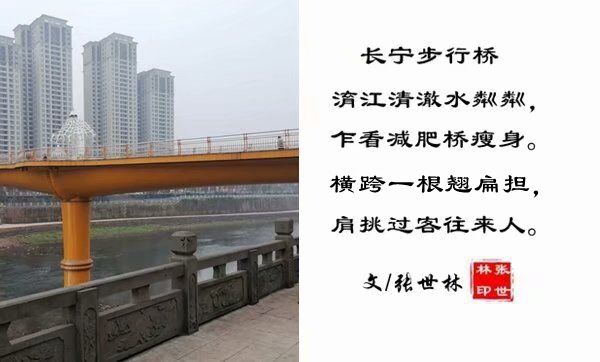 长宁步行桥像一根翘扁担。