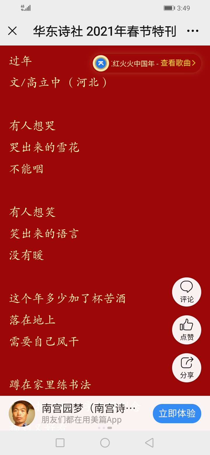 高立中,网名南宫园梦,河北南宫农民诗人,南宫市作协会员,世界华人文学社签约诗人。诗观,诗歌是我最美的灵魂!