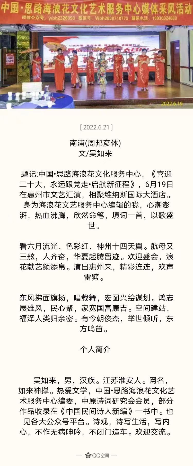 吴如来,男,汉族。网名: 如来神撑。中原诗词研究会会员,部分作品被收录在《中国民间诗人选编》和《东平诗词》等书中。爱好文学,欢迎交流,欢迎指导
