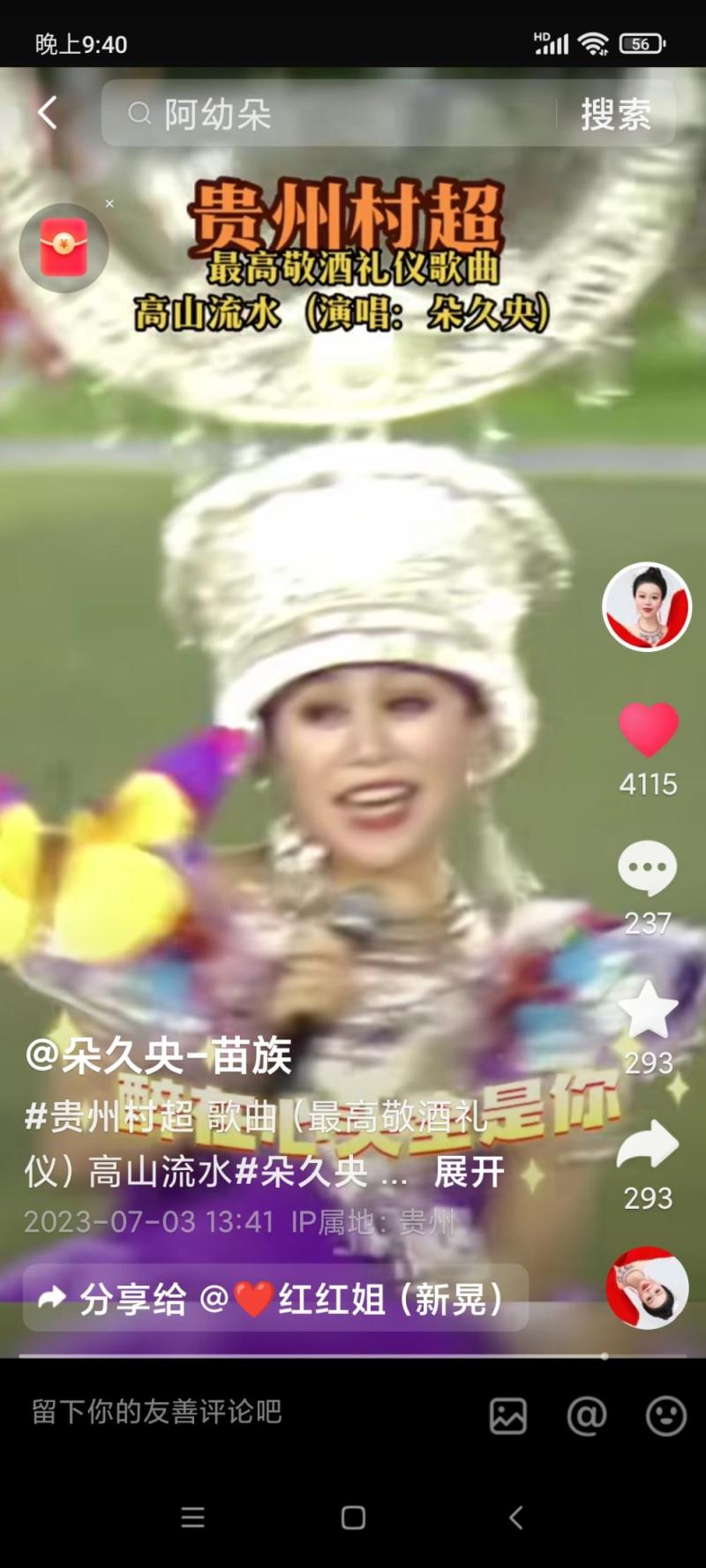 为贵州青年歌手朵久央演唱题诗
