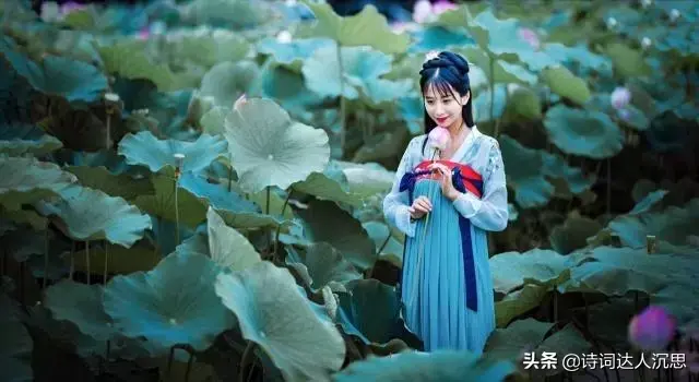 湖畔荷花争盛艳,兰舟娇女欢欣。熏风旅雁展浮云。游人含笑,草木叶枝新。