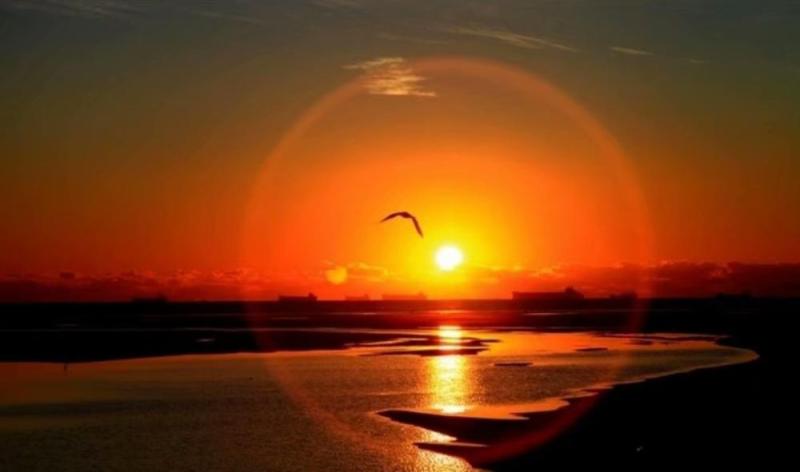 每天都要和夕阳见面看到它由鲜红慢慢走进淡红的帷幔里而后徐徐走下一处天边......