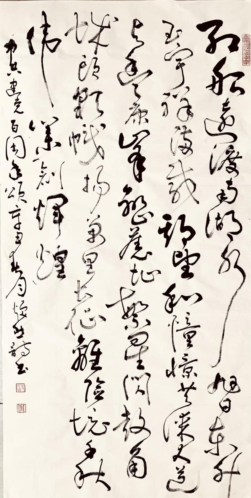 在伟大的中国共产党即将迎来一百周年生日的时刻,本人怀着感恩和激动的心情,创作出七言律诗《中共建党百周年颂》,同时以书法形式表现出来。诚望得到老师和诗友指导。释文:红船远渡南湖水,旭日东升玉宇祥。满载期望和憧憬,共谋大道与丰康。峰峦旧址繁星闪,鼓角城头彩帜扬。万里长征离险境,千秋伟业创辉煌。