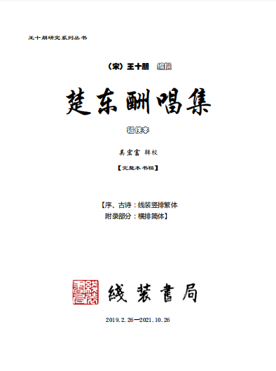 《楚东酬唱集》是南宋王十朋编撰的一部楚东诗社唱和诗合集,是迄今可知仅存的南宋时期的诗社选集。原著由于年代久远,早已亡佚。笔者自2019年2月26日起,经过近三年的辑佚,终于使经典重现。