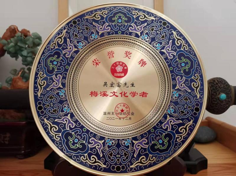 2021年12月,温州王十朋研究会对长期以来专致于王十朋研究并取得卓越学术成就者,授予“梅溪文化学者”的荣誉称号,本人忝列其中。28日收到奖牌,感慨良多,赋诗以记。