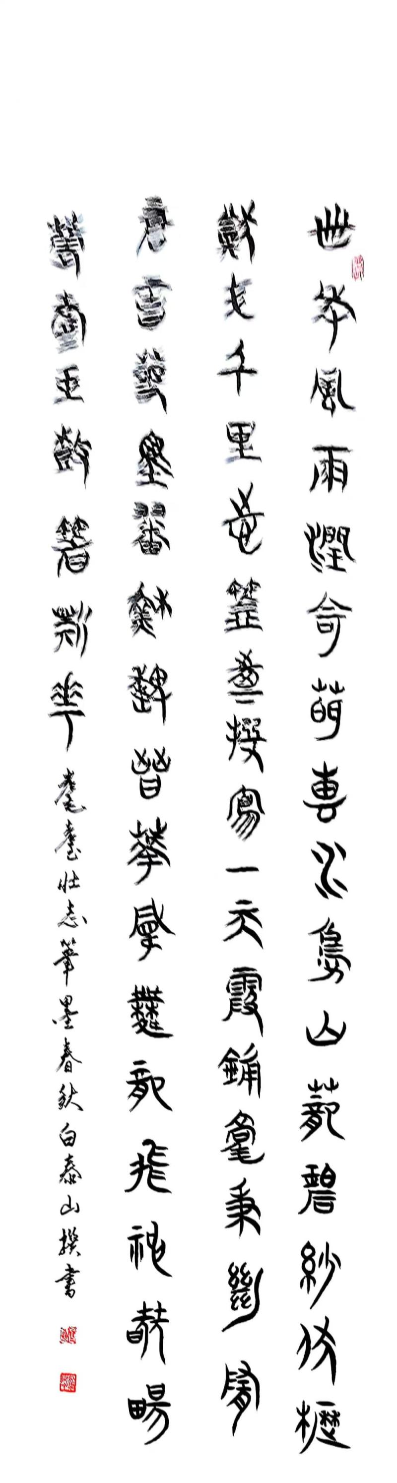 耄耋壮志笔墨春秋--京山市老年书协成立四十周年誌庆白泰山(湖北)卌年风雨润奇葩,惠水凫山笼碧纱。伏枥犹存千里志,书台撰写一天霞。铺毫秉继隋唐意,泼墨翻苏魏晋华。凤舞龙飞神晓畅,耄耋玉树著新花。