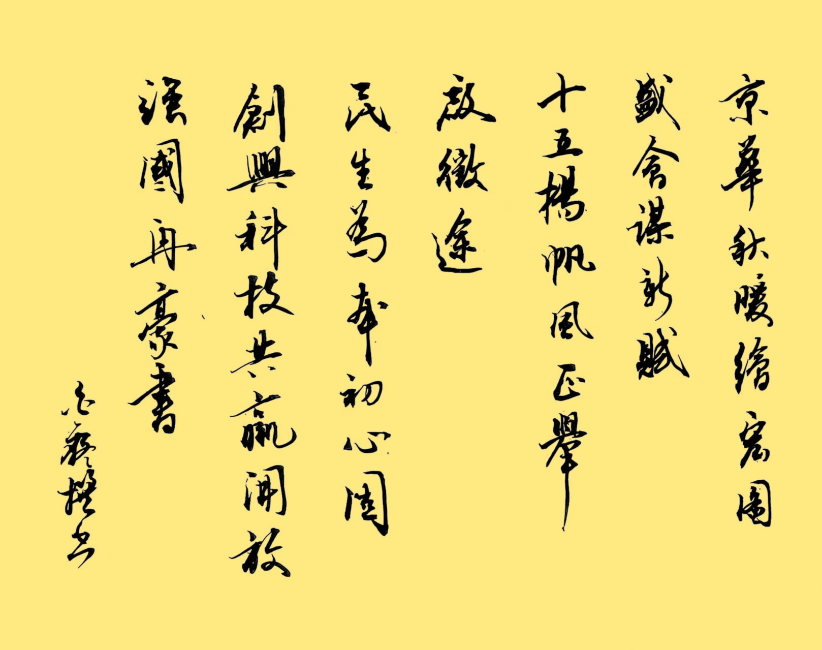 平湖乐 赞二十届四中全会精神白泰山(湖北)京华秋暖绘宏图,盛会谋新赋。“十五”帆扬正风举,启征途。民生为本初心固,创兴科技,共赢开放,强国再豪书 。