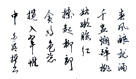 〔仙吕·醉中天〕春节过了白泰山(湖北)桌上全精脍,壶里漫香醅。相聚元宵笑语飞,满室欢情溢。为了家人福祺,今朝寻醉,明朝各自东西。〔仙吕·醉中天〕小令兼用。前五句与醉扶归同。谱:×仄平平厶△,×仄仄平平△。×仄×平×厶平(上)△,×仄平平厶△。×仄平平厶平(上)△,×平平厶△,×平×厶平平△。