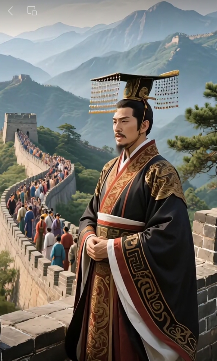 千古一帝秦始皇,统一中国扫六国。开创封建皇帝制,统一货币及度量。一生追求长生梦,修建长城及秦陵。
