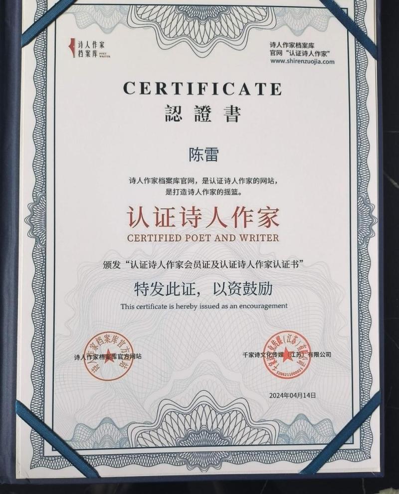 作者:陈雷,电话微信同步15542578866通联:辽宁省大连市金州区友谊街道宏意小区39号楼三单元603邮编116100