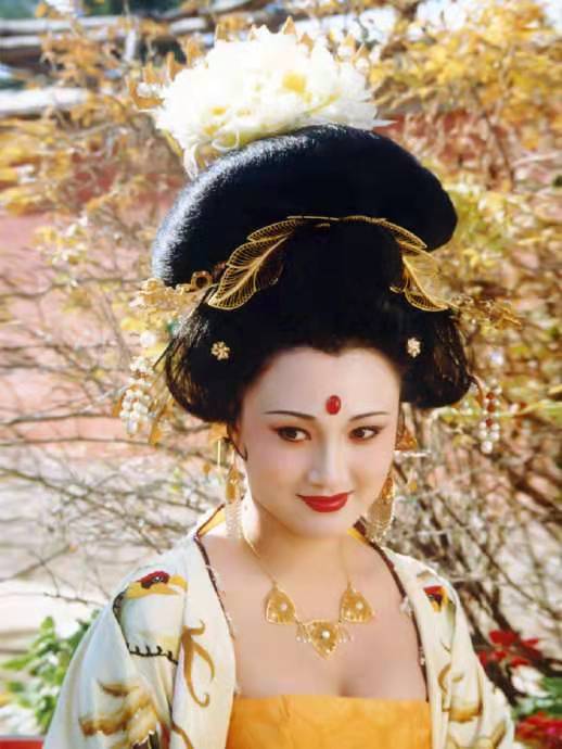 窗外百鸽传信件。贵妃艳妆来庭院。