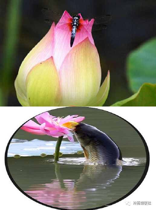 蜻蜓点破芙蓉梦,锦鲤衔残窈窕花。