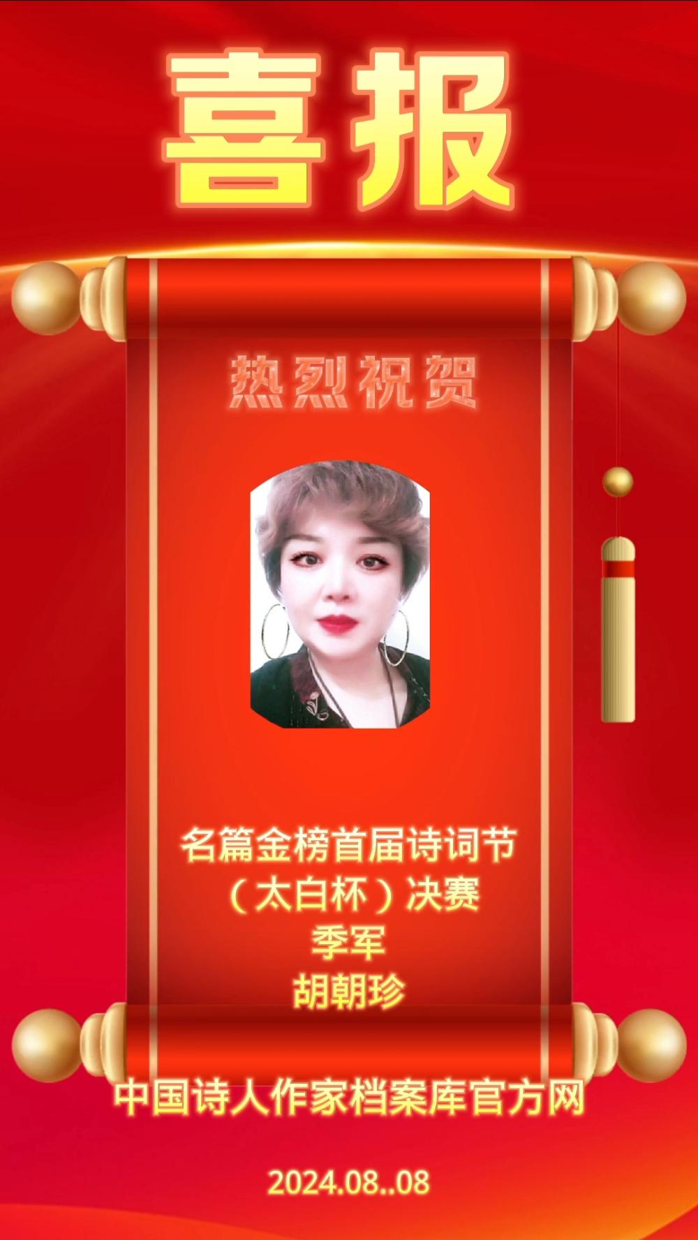 胡朝珍(网名:超凡脱俗)四川泸州人,大学学历,优秀中共党员教师,《中国诗人作家档案库官网》会员,《中国诗歌网》蓝v诗人,《江阳诗社》作协会员,《中国新诗词集》优秀诗人。多篇文章曾获国家.省.市.区级奖。在《速读》《素质教育》《四川新闻网》《太阳雨文学》《潇雨轩雨墨诗韵》《中州诗苑》《山东文学》《中国世纪文学》《友联文化艺术苑》《雨墨飘香》《北京头条》《华人头条》《美篇》《蓬莱书院》及多家媒体平台上发表,并出过多期专辑。《鸿鹄文学》社创始人,《北京金榜头条》总顾问。特别喜欢诗词创作,以内容至上,擅长古风和近体结合灵活运用于创作之中,勇于探索大胆创新。2019年荣获中国国际文艺巅峰诗人作家英豪榜,全球华夏文学先锋时代英豪榜冠军称号。2020年被评为文巡中华新年星光榜,金牌诗人作家杰出榜、网络文坛形象大使,魅力传承荣耀榜亚军;《中国世纪文学》《诗梦撷英文学》《龙之梦国际文学》《羽墨香文学》《海外文学》《中国世纪文学》《作家前线》签约作家.诗人,文学领军人物。《北京金榜头条》编辑签约诗人。人生格言:生命因助人而精彩,生命因学习而辉煌。用诗传递正能量,用诗谱写醉美人生。