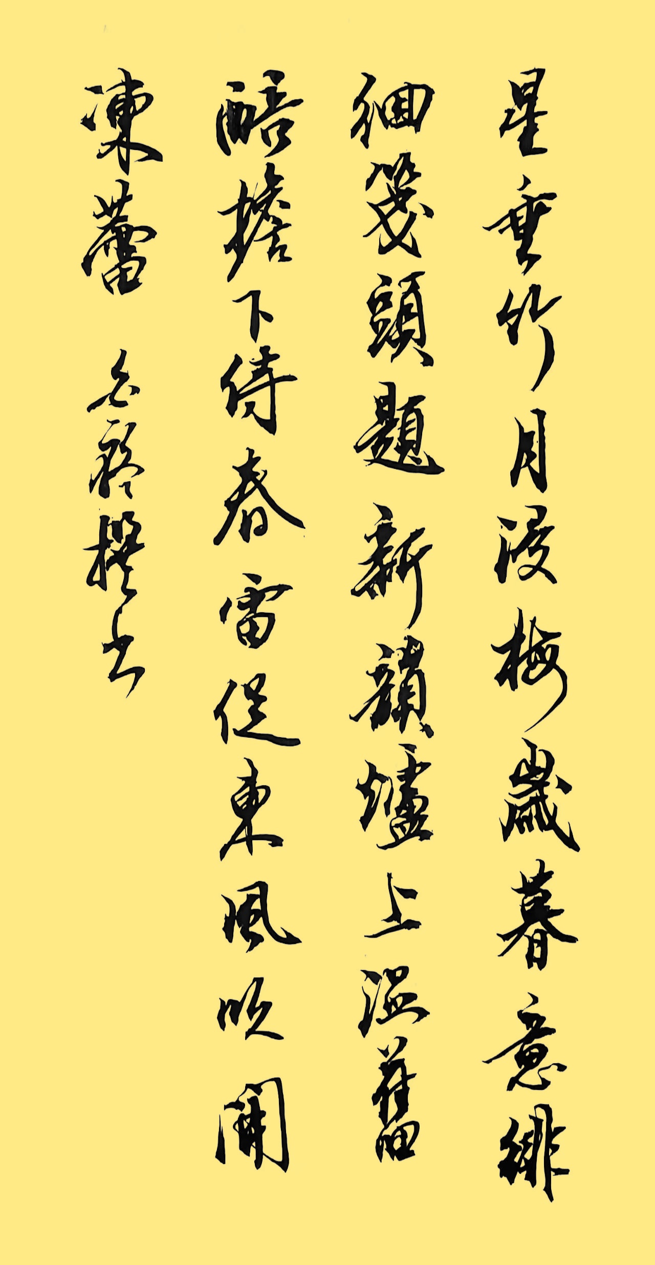 星垂竹,月浸梅,岁暮意徘徊。笺头题新韵,炉上温老醅,檐下待春雷,促东风、吹开冻蕾。