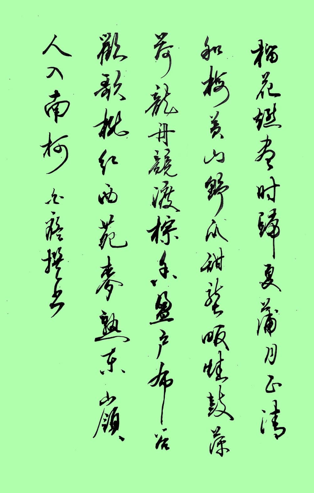 〔仙吕·一半儿〕芒种白泰山(湖北)麦黄秧绿汗如珠,布谷声中收种速,总把山河常换图。叹农夫,一半儿开心一半儿苦。〔仙吕·一半儿〕小令兼用。即忆王孙末句定格嵌入两个“一半儿”。第二三句第六字偶尔有用上声者。谱:×平×仄仄平平△,×仄平平×去平(上)△,×仄×平平去平(上)△。厶平平△,一半儿平平一半儿上(平)△。