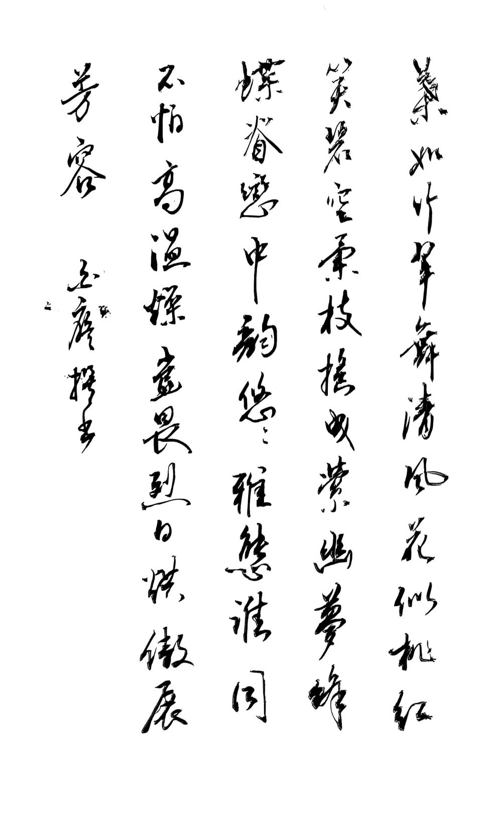 〔双调·水仙子〕夹竹桃白泰山(湖北)叶如竹翠舞清风,花似桃红笑碧空。柔枝摇曳萦幽梦,蜂蝶眷恋中,韵悠悠雅态谁同?不怕高温燥,岂畏烈日烘,傲展芳容。〔双调·水仙子〕小令兼用。谱:×平×仄仄平平△,×仄平平×厶平△。×平×仄平平去△,平平×厶平(上)△,仄平平、×仄平平△。×平厶,×仄平(上)△,×仄平平△。