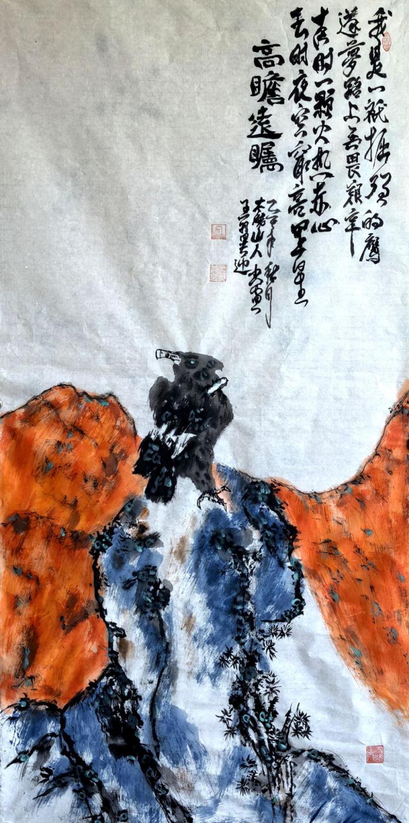 振羽穿云,独啸长空惊日月;凝眸瞰野,孤悬绝顶阅春秋