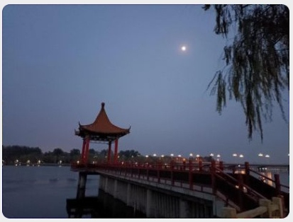 正月初九,淸晨室外夜雨润,空气格外新,树梢红灯星光闪,风柔和地吹,一派祥和………………!!!!