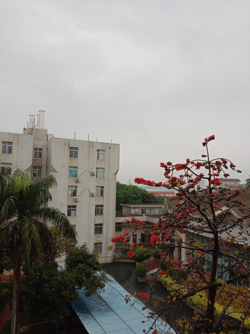 元宵之夜无月有雨,单位办楼下的红棉树,一夜之间开花