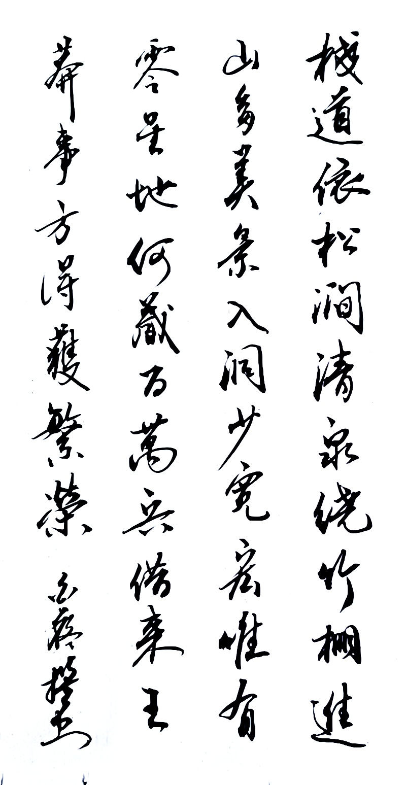 〔双调·水仙子〕永漋河诗书画社赞白泰山(湖北)永漋沃土墨花香,澨水烟波笔路长。诗书画里春情荡,竞风流才气爽,且看他该朗疏狂。书翰墨王欧样,赋诗词唐宋腔,活脱脱几个文化儿郎!〔双调·水仙子〕小令兼用。谱:×平×仄仄平平△,×仄平平×厶平△。×平×仄平平去△,平平×厶平(上)△,仄平平、×仄平平△。×平厶,×仄平(上)△,×仄平平△。