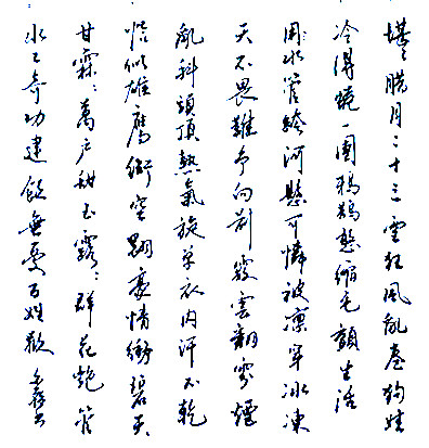 〔中吕·普天乐〕元宵乐白泰山(湖北)彩船欢,花狮跳,荆歌妖娆,楚舞风骚。盘地鞭,冲天炮,深巷长街疯狂闹,兆丰年火了元宵,春风似剪,春情充炽,春汛如涛。〔中吕·普天乐〕小令兼用。谱:仄平平,平平厶△。×平×仄,×仄平平△。×仄平,平平仄△。×仄平平平平厶△,仄平平、×仄平平△。××仄平(上),×平××,×仄平平△。