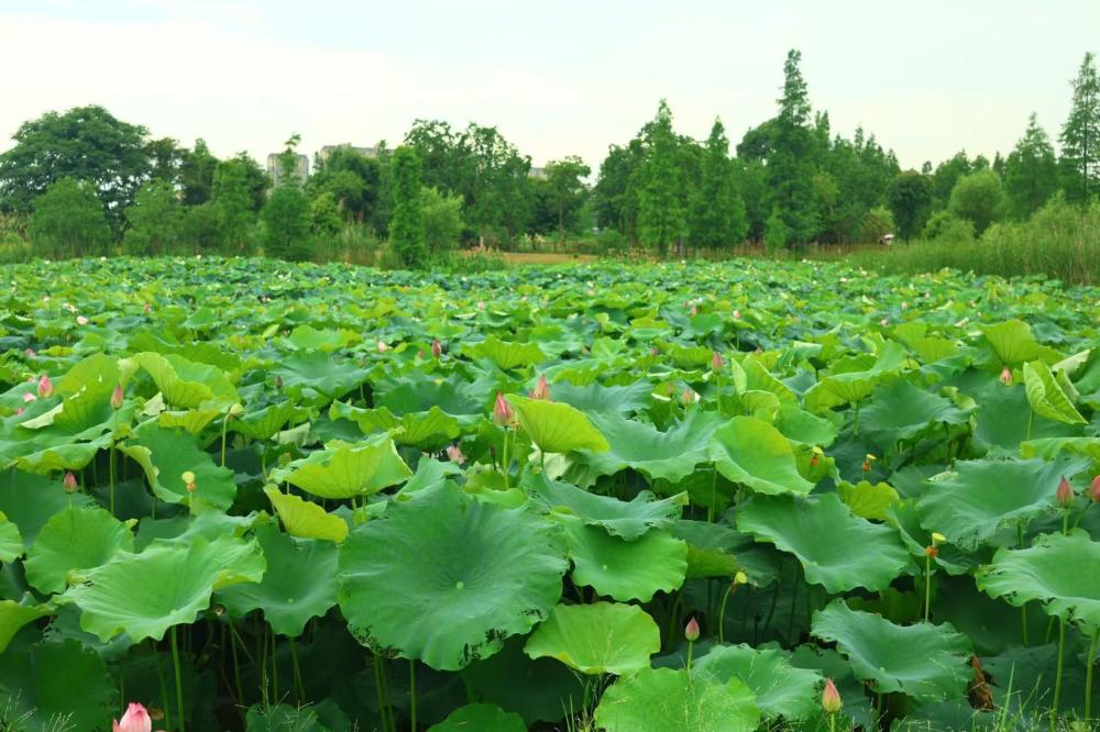 在象湖公园的柔波里踏入荷花盛开的天地阳光洒在美丽的荷塘湖面波光与荷影共舞
