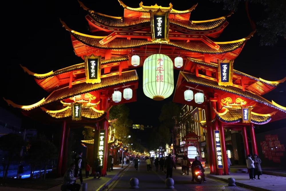 篝火广场上的跳竹竿舞蹈体现了少数民族特色风情打铁花和火壶独特表演展现了非遗文化的魅力