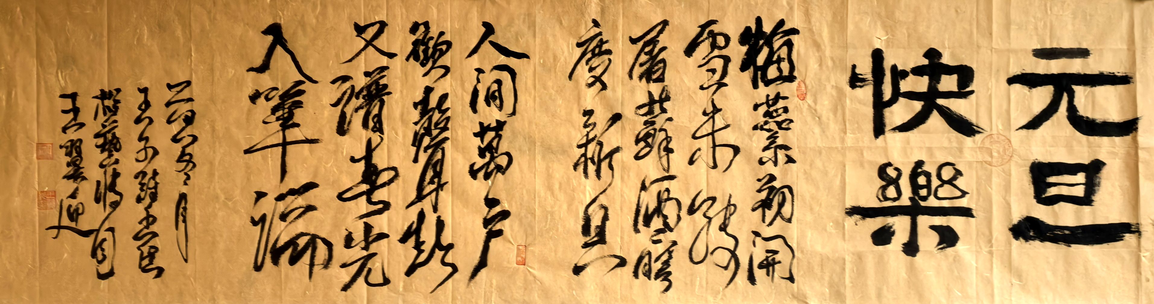 梅破轻霜香暗度,新换桃符,暖透屠苏盏。万户欢声风里漫,春光已向毫端展。 晓日初升云影散,岁序更新,且共流年缓。笑指人间烟火满,今朝更有东风暖。