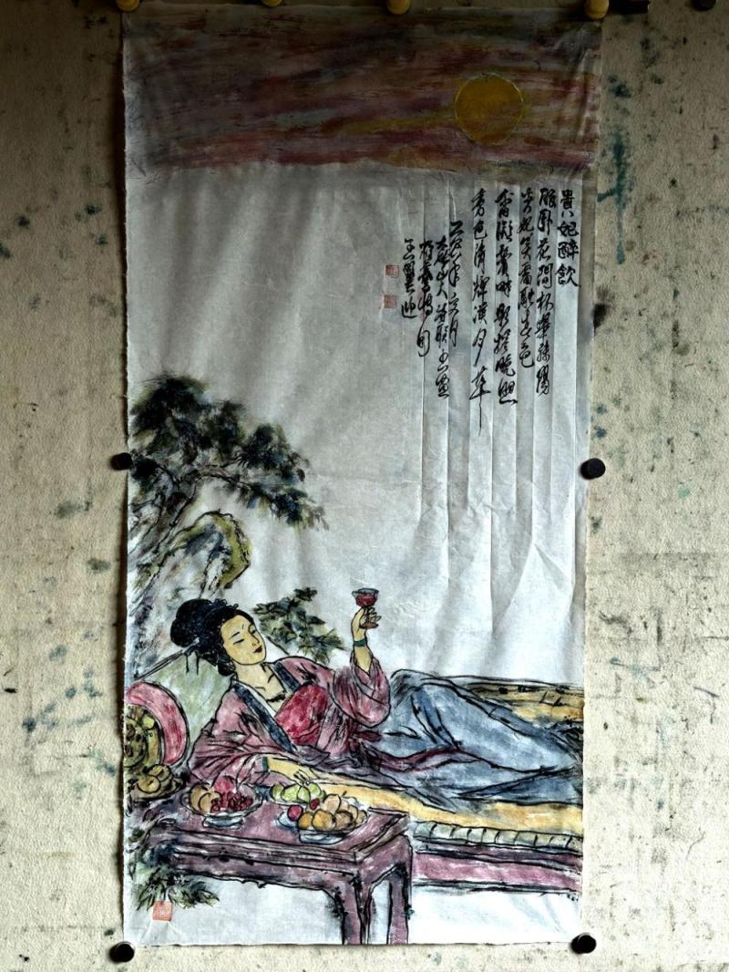 落日熔金映画栏,贵妃醺卧对杯欢。果香漫惹春风软,鬓影轻摇晓梦残。 歌渐缓,意偏绵,一襟清韵伴花眠。红尘暂忘深宫事,醉里贪欢岁月闲。