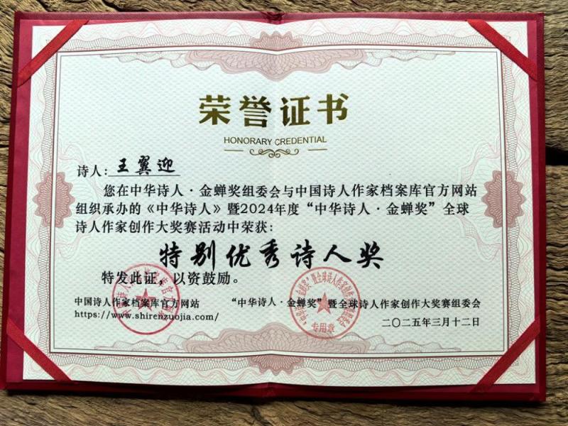 笔绘华章,入编佳作传千里;诗凝雅韵,荣获殊荣誉九州