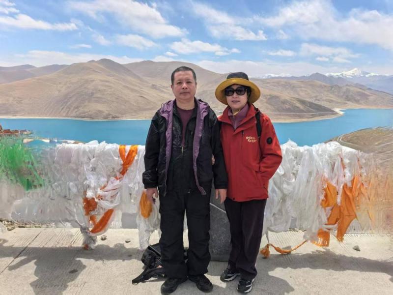 一练澄明绕翠螺,夭桃照影晕红酡。云扶雪岭幡摇偈,风皱春漪棹点梭。青稞酿,野炊锅。牧歌遥答褐衣蓑。斜阳醉倚林卡帐,漫数星河坠草坡。