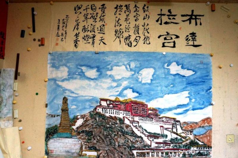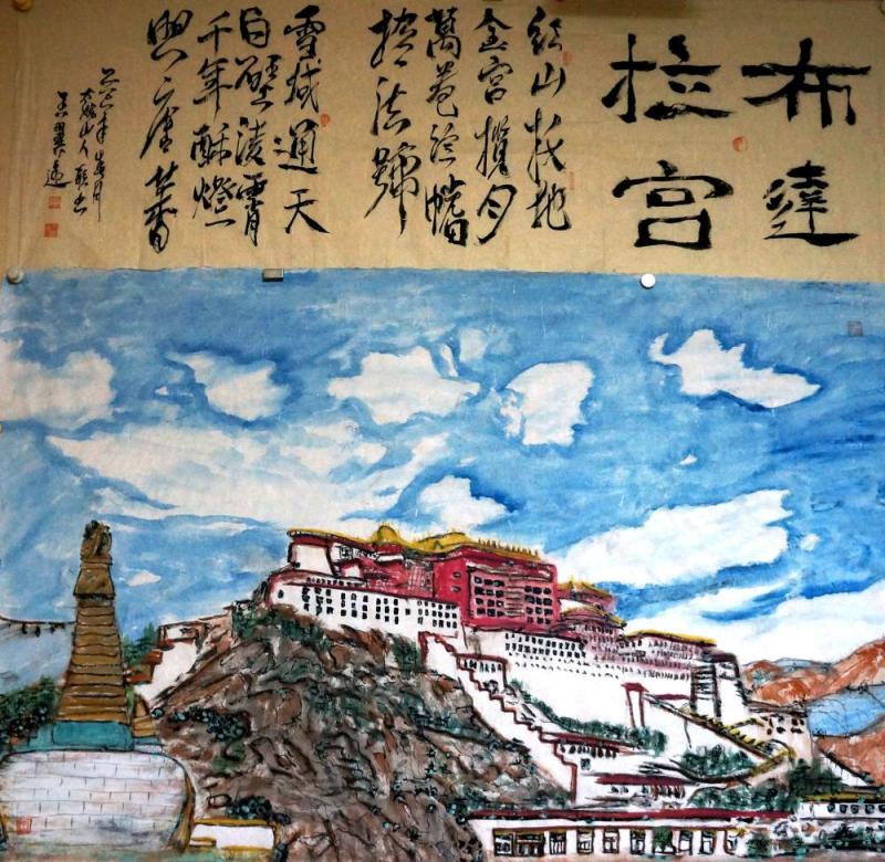 雪域明珠,千仞孤峰,赤殿凌霄。仰观琼宇,俯揽云涛,梵音荡九霄。经幡翻卷,金顶含光,神鹰瞰寂寥。溯沧桑,念松赞文成,古道迢迢。红墙白壁如削,恰万卷经书垒寂寥。有酥灯长烁,法螺低语,轮回六道,钟鼓相招。暮雪湮阶,晨光镀脊,鹰隼盘旋识旧巢。凭栏处,纵浮云过眼,心向莲苞。