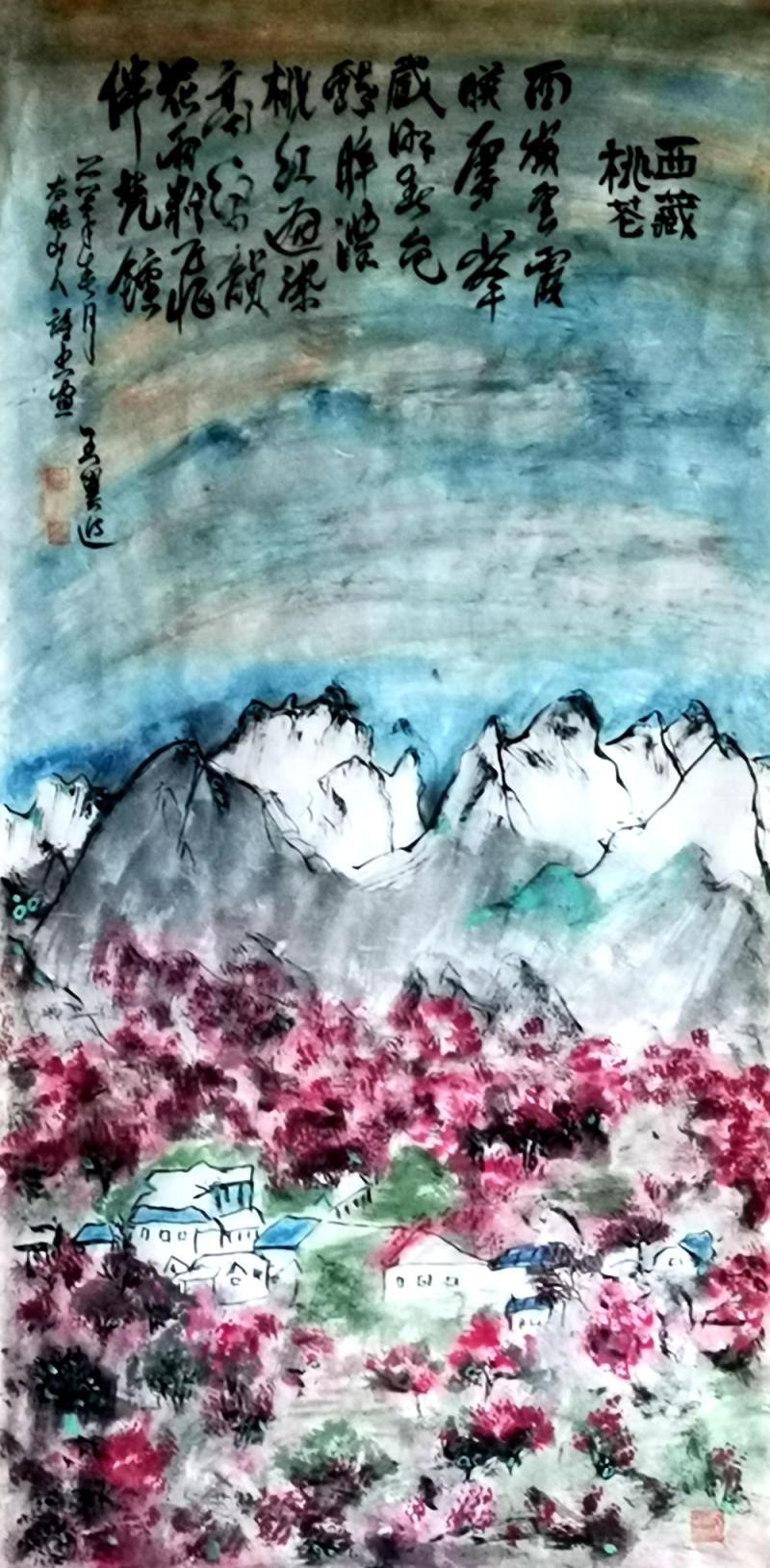 雪域浮光,云捧琼英,霞染绛绡。瞰冰峰倚翠,千枝灼灼;梵音浸野,万蕊夭夭。风拂经幡,香融圣水,漫把春魂托碧霄。回眸处,恰仙姿绰约,醉引神雕。山河尽展妖娆,叹玉魄清姿胜六朝。纵江南烟软,输其傲骨;洛阳色艳,逊此孤标。一树禅心,半空花雨,韵化诗情入酒醪。沉吟久,问尘间何处,可避喧嚣?