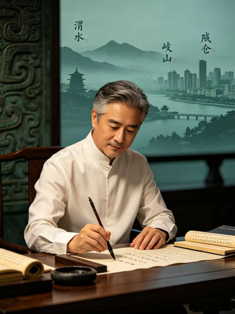 春日,周原繁花盛开,他坐在田间,望着远处的岐山,脑海中浮现出周人铸铜造器的场景,提笔写下“青铜铸史耀千秋,纹饰精雕巧匠谋”的诗句,赞叹古人的匠心智慧;夏日,渭水潺潺,他站在青铜器博物院里,看着何尊上的铭文,心中涌起无限自豪,挥毫写下“何因称作世间尊,我颂神州底蕴敦。铜器精雕呈圣德,金铭妙刻载玄门”,抒发对家乡瑰宝的赞美;秋日,天高云淡,他漫步石鼓山下,看着石鼓上斑驳的铭文,感受着千年文脉的传承,写下“石鼓无声记岁华,铭文斑驳蕴烟霞。千年文脉源流远,光耀神州万世夸”,诉说对历史文脉的敬仰。