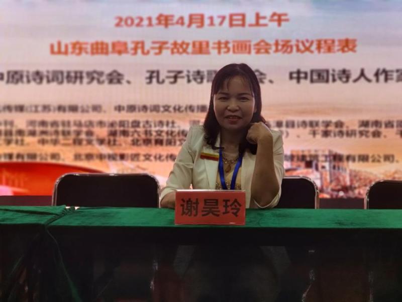 谢昊玲,女,又名滢芝,汉族,梧州市人,网名:感恩的心[爱心]。广西艺术学院毕业,爱好文学、诗、书、画、音乐,舞蹈。喜欢哲学、风水,佛学研究等,现从事驾考培训行业,荣获《金牌教练》职称。多年酷爱詩詞曲文,书法,绘画,音乐,舞蹈等艺术,成绩优秀,作品曾在各报刊选登。绘画在不同市级以上美展中多次荣获特等、一等奖,获《荣誉証书》。